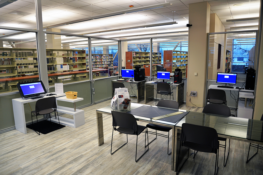 Check out Studio C, the new podcasting studio! Perfect for all your podcasting, voice acting, and audio needs. The podcasting studio comes equipped with soundproofed walls, podcasting equipment, and video and audio software.
